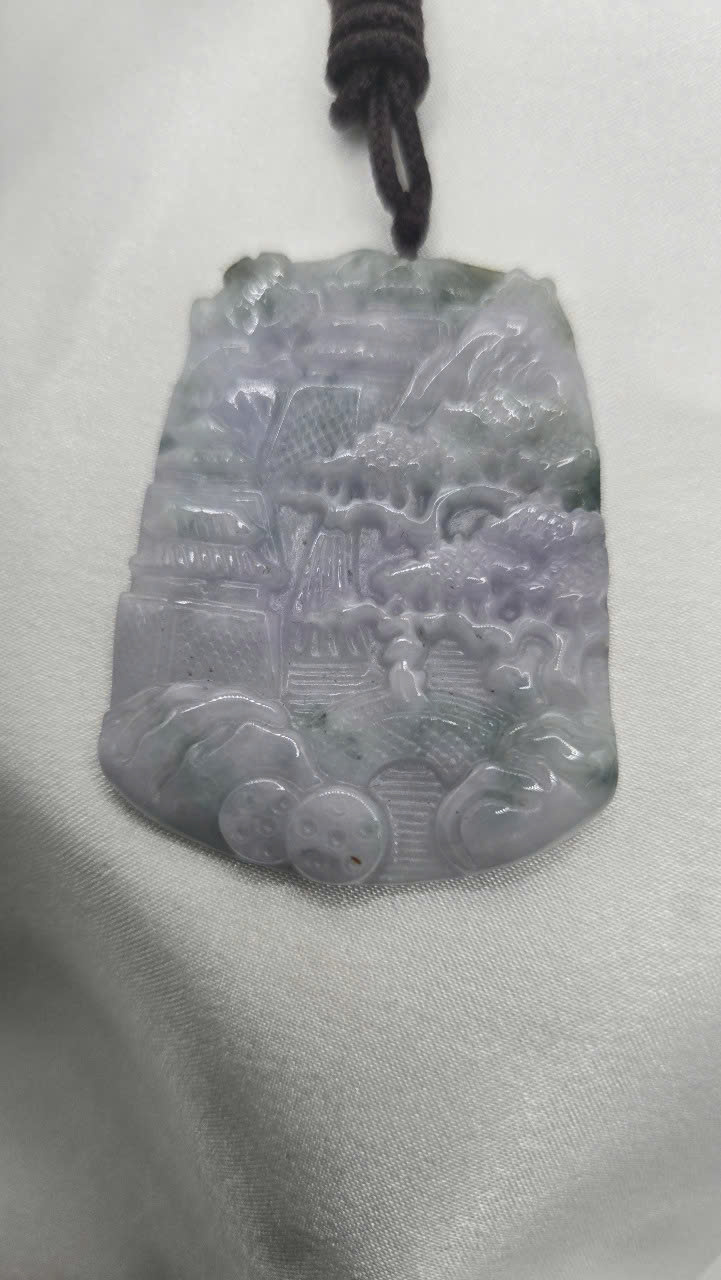 Mặt ngọc phỉ thúy Myanmar nếp A màu xuân đào – Sơn thủy bài